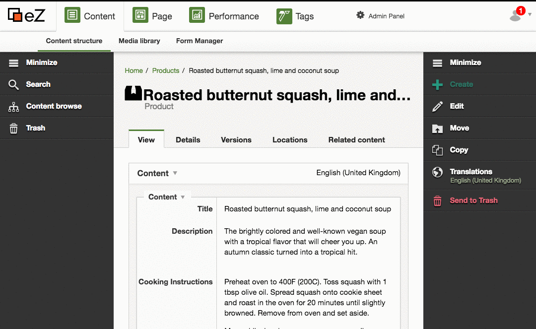 The eZ Enterprise Demo now uses the Netgen Tags bundle. This bundle was recently ported to eZ Platform and provides a powerful, solid and user-friendly way to categorize content using tags. The solution lets editors and administrators define their taxonomies in a dedicated interface. These taxonomies that are immediately available for editors working on content who want to categorize any content types.
